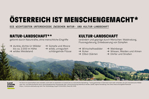 Wichtig ist in diesem Zusammenhang, dass der Begriff „Natur“ in vielen Studien nicht näher definiert beziehungsweise mit „Landschaft“ gleichgesetzt wurde. Eine gänzlich natürliche Landschaft, in die der Mensch nicht eingreift, würde an vielen Orten Österreichs aus dichten, schwer zugänglichen Wäldern bestehen, in denen sich Menschen weniger wohl und sicher fühlen als in halboffenen Landschaften. Daher wirken traditionelle, kleinteilige Kulturlandschaften mit einem Mix aus bewirtschafteten Wäldern und von der Landwirtschaft genutzten Wiesen, Weiden, Äckern, Weinbergen und anderem besonders entspannend und erholsam.
