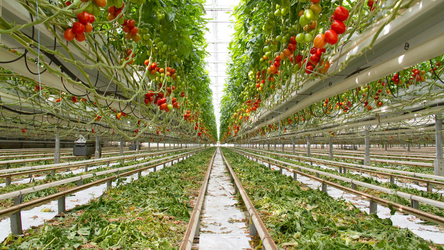 Der Boden in Ganzjahreskulturen ist versiegelt und gleicht jenem in Fabrikshallen. In Hüfthöhe stehen die Tomatenpflanzen auf Balken, die in Reihen parallel durch das Glashaus verlaufen. Am Boden dazwischen verlaufen Schienen, die für Fahrzeuge und als Heizung dienen. Ein weiteres Heizungsrohr verläuft auf Höhe der Pflanzen, direkt unter den Früchten. Wasser und Nährstoffe bekommen die Pflanzen über Rohre. Das Glashaus hat Lüftungsöffnungen am Dach. Es kann bei Bedarf mit Kalk besprüht und so das Glashaus bei zuviel Hitze gegen die Sonne abgeschirmt werden.