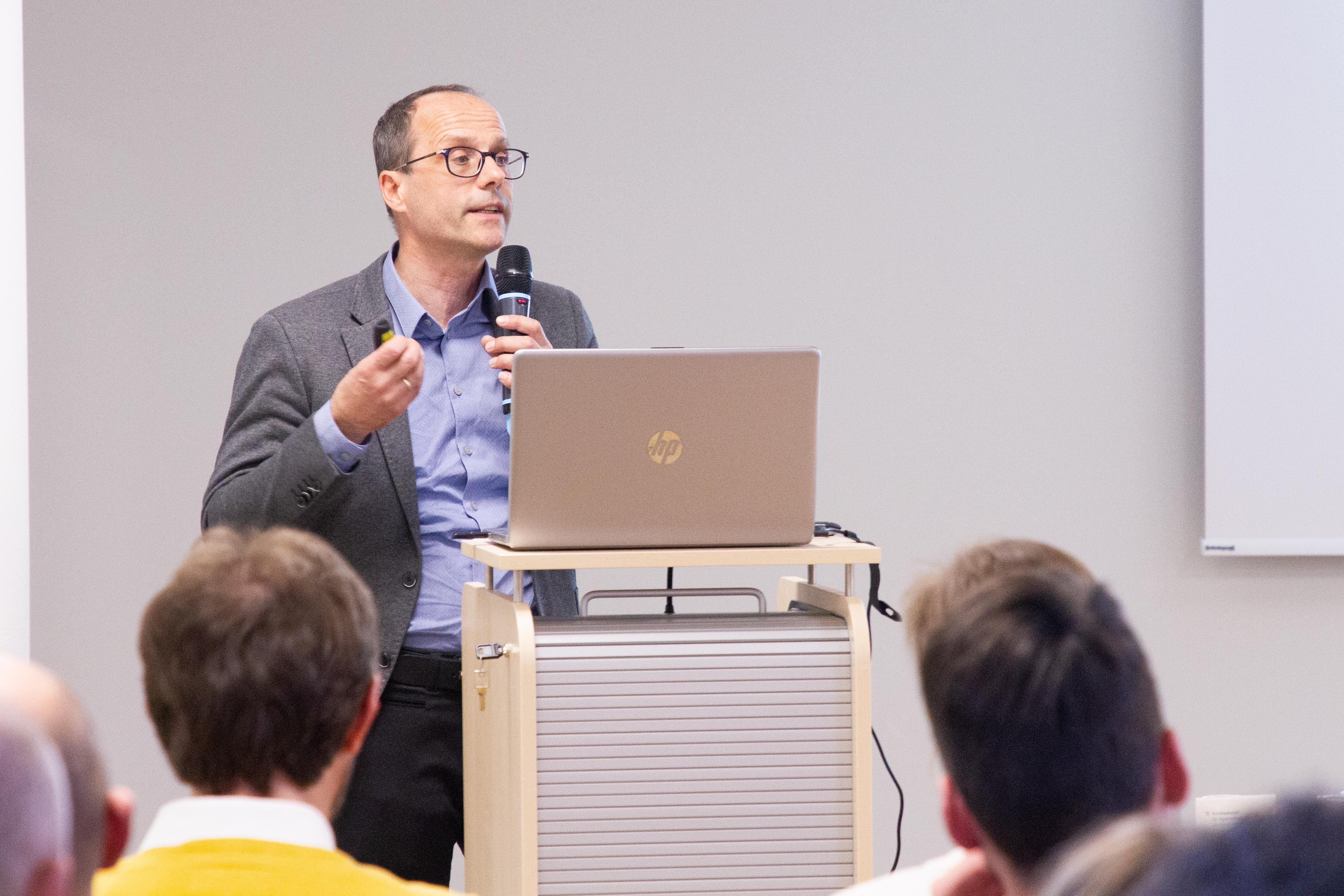 Andres Steinwidder von der HBLFA Raumberg Gumpenstein betont die Bedeutung der Wiederkäuer zur Erhaltung des Kohlenstoffspeichers Grünland, sowie deren effiziente Nutzung als Lebensmittel. / © Land schafft Leben, 2020