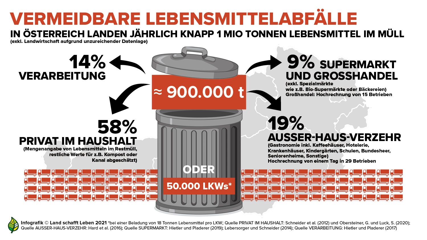 In Österreich landen jährlich mehr als 900.000 Tonnen Lebensmittel in Müll. © Land schafft Leben, 2022