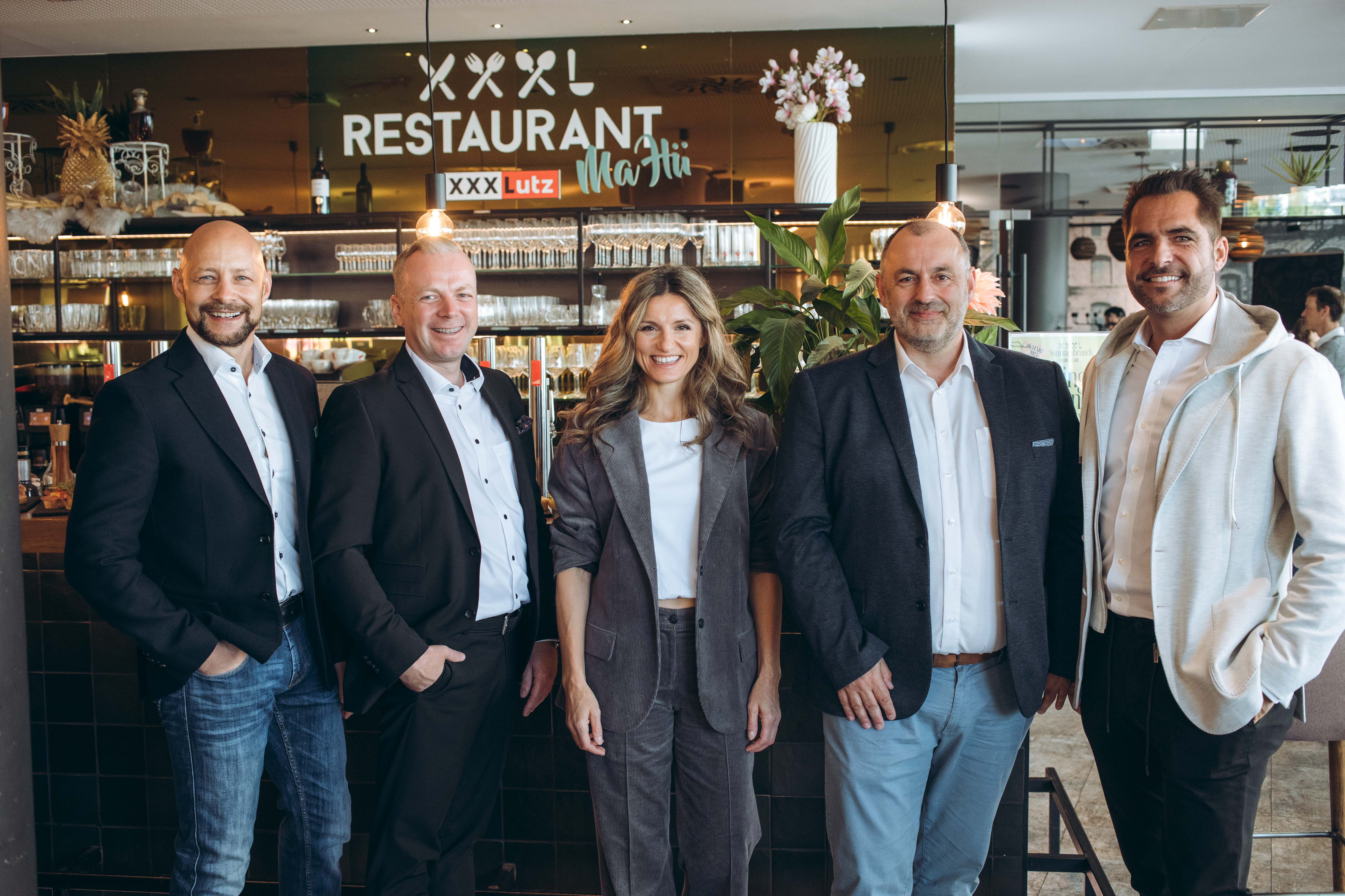 v.l.n.r. Hannes Royer (Land schafft Leben), Andreas Haderer (XXXLutz-Gastronomie), Maria Fanninger (Land schafft Leben), Thomas Kaser (XXXLutz-Gastronomie), Florian Hütthaler (Hütthaler KG) © Mila Zytka/Land schafft Leben