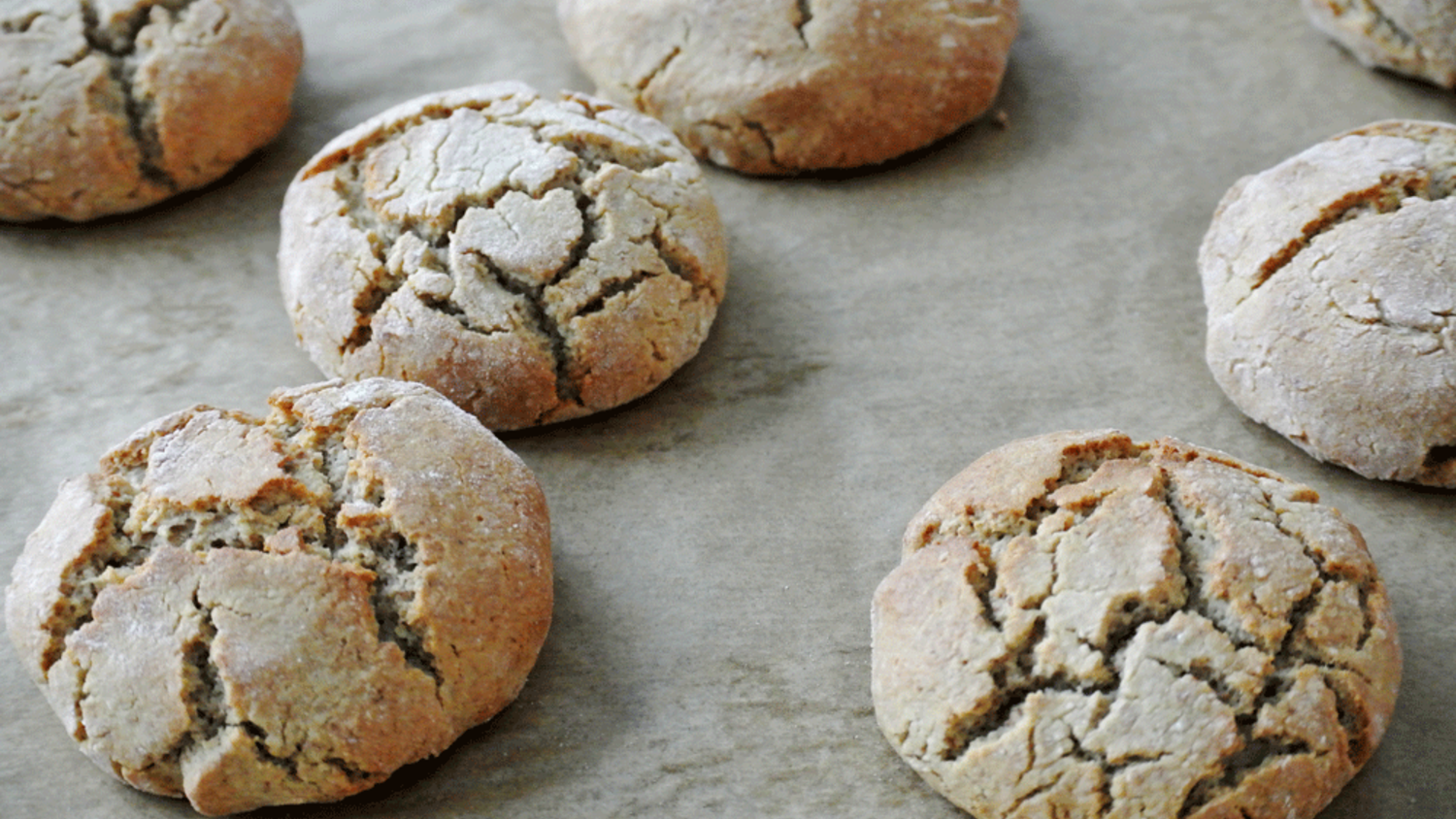 Fladen von circa 6-7 cm Durchmesser und 3-4 cm Höhe formen, bestäuben und auf das Backblech legen.