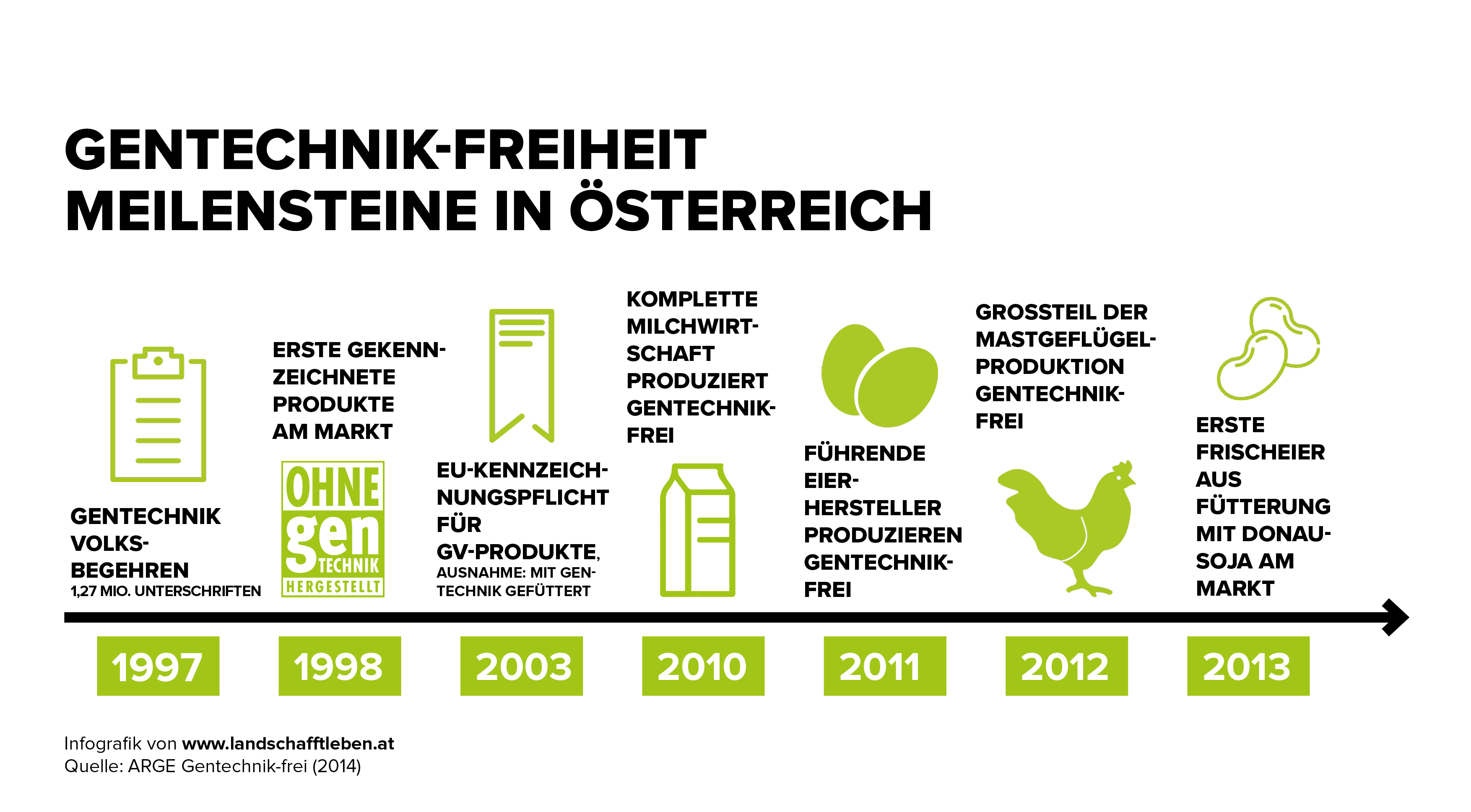 1996 kam das erste Schiff mit gentechnisch verändertem Soja aus Übersee im Hamburger Hafen an. Im Jahr darauf unterzeichneten mehr als 1,2 Millionen Österreicher ein Volksbegehren gegen Gentechnik. Ebenfalls vor 20 Jahren wurde die ARGE Gentechnik-frei gegründet. Heute kennzeichnet sie über 2.300 Produkte mit dem Zeichen „Ohne Gentechnik hergestellt“. Etwa 500.000 Tonnen Soja kommen pro Jahr nach Österreich, soviel wie alle Österreicher zusammen auf die Waage bringen. Ein Großteil der Soja-Importe ist gentechnisch verändert.
