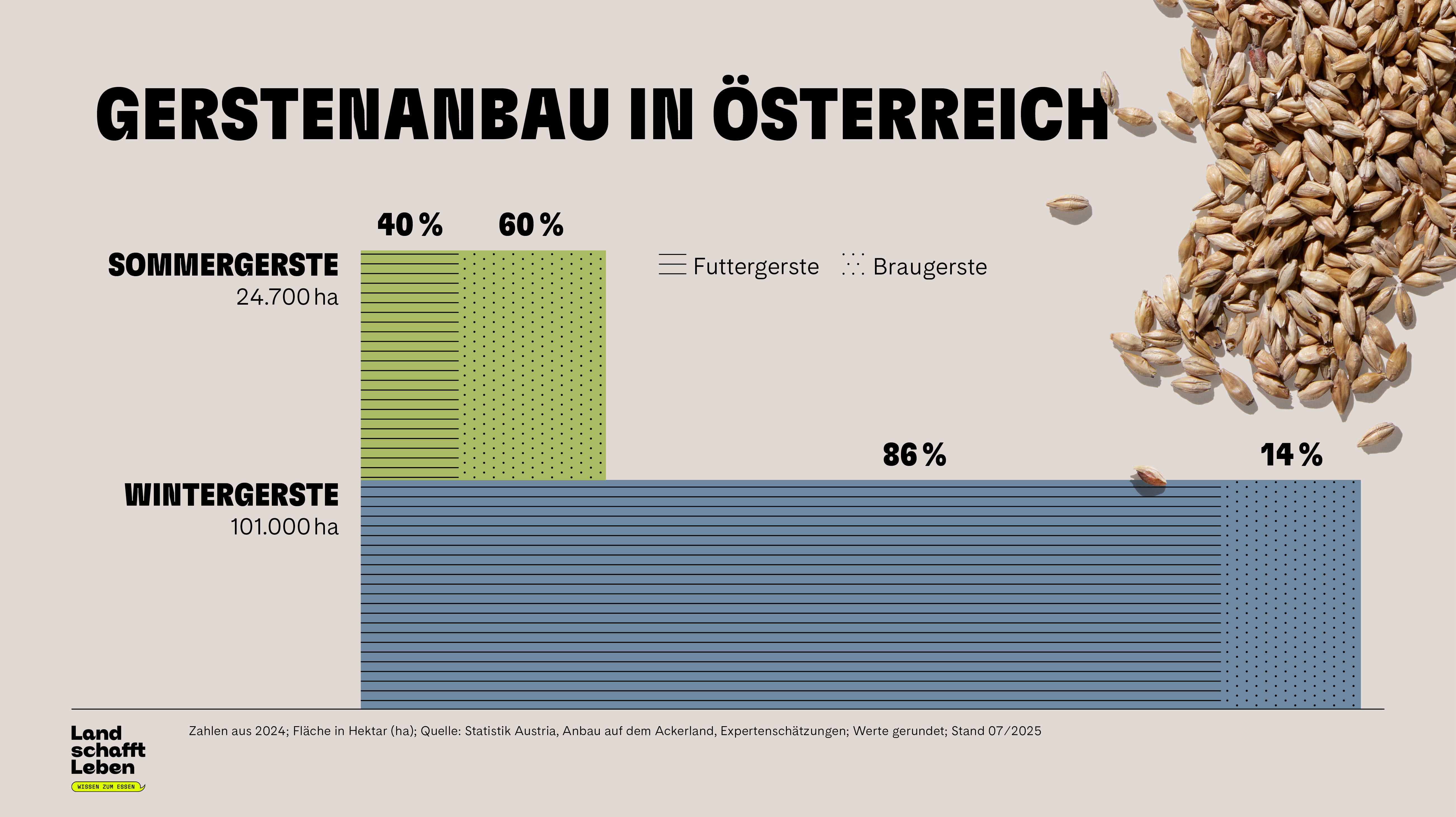 Braugerste wird hierzulande als Sommer- und Wintergerste angebaut. Ihre Verwendbarkeit für den Brauprozess hängt unter anderem vom Protein- und Stärkegehalt des Getreides ab. Ist dieser zu hoch oder zu niedrig, kann die gleichbleibende Güte beim Bier nicht garantiert werden und die Gerste wird verfüttert. Heiße und trockene Sommer beeinträchtigen die Qualität der Sommergerste, die weniger als die Hälfte der verwendeten Braugerste ausmacht. Landwirtinnen und Landwirte setzen daher zunehmend auf neue Winterbraugerstensorten.