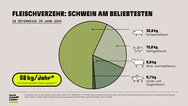 Mit einem Pro-Kopf-Verbrauch von zuletzt rund 33 Kilogramm im Jahr ist Schweinefleisch das Lieblingsfleisch der Österreicherinnen und Österreicher. Schweinsbraten, Extrawurst, Schinken, Schnitzel: Schweinefleisch ist tief in der heimischen Esskultur verankert. Es ist kulinarisch vielfältig einsetzbar, proteinreich, hat ein gutes Preis-Leistungs-Verhältnis und wird ganzjährig in Österreich produziert.